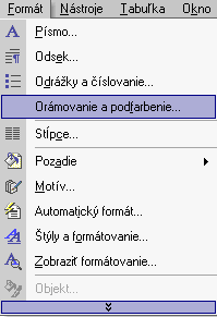 označený text môžeme orámovať  pomocou príkazu Formát / Orámovanie  a podfarbenie / Orámovanie...
