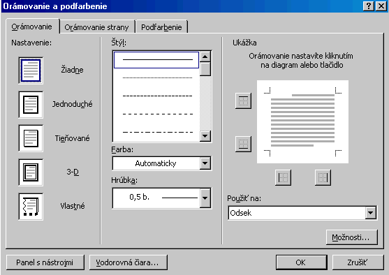 Orámovať sa dá aj strana dokumentu príkazom Formát / Orámovanie  a podfarbenie / Orámovanie strany ...